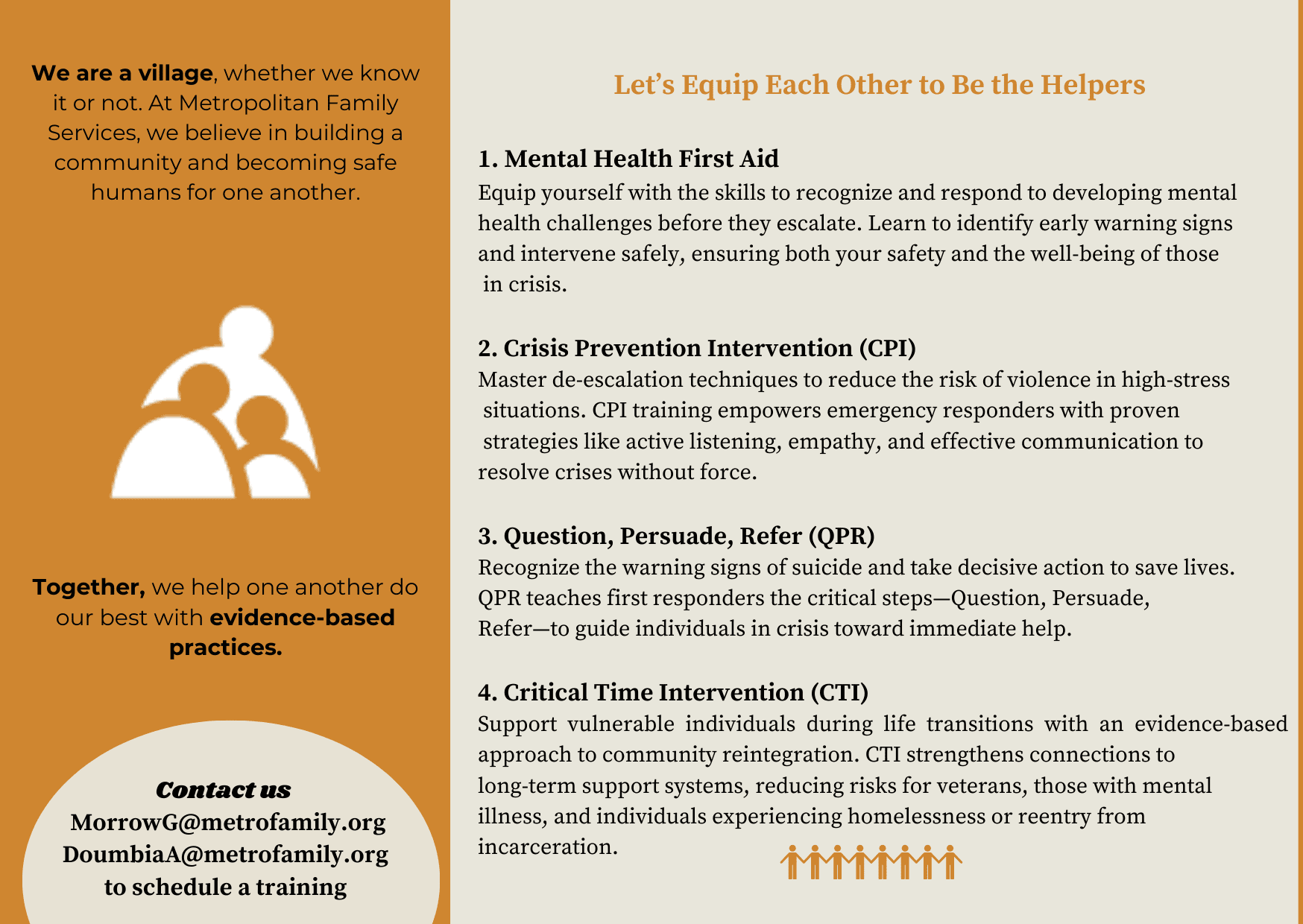 - We come to you—at home, in school, or in the community—to give support on the spot.